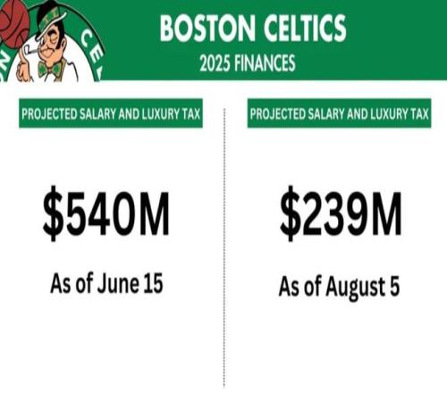 当然,骑士队这边是补强了阵容实力,而凯尔特人管理层则展现了截然不同的操作思路,从去年夏天休赛期至今,他们通过一系列精妙操作,成功将总薪资压到奢侈税线之下,减少了高达约3.3亿美元的薪资和奢侈税支出,真是让人叹为观止。
