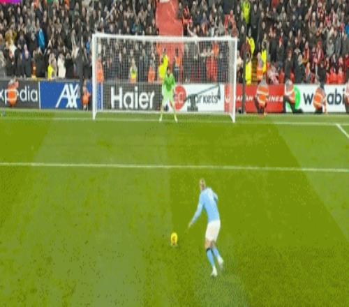 第92分钟,阿利松出击扑倒努内斯,裁判果断判罚点球。哈兰德站顶住压力,一蹴而就,曼城2-1绝杀对手,魔人布欧更是脱衣疯狂庆祝。