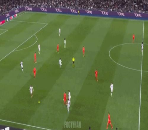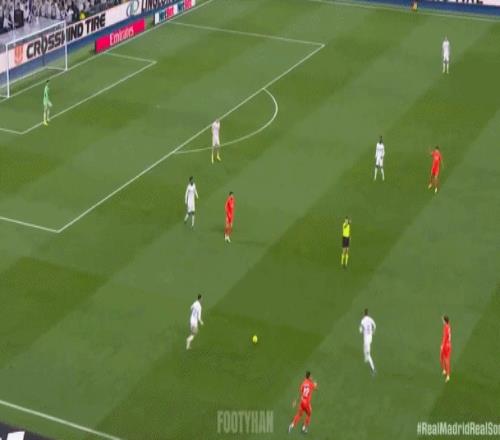 阿诺德这种大斜线转移,简洁、明了,能瞬间发起反击(如下动图)。这样的传球,会不会让你想起莫德里奇、克罗斯?