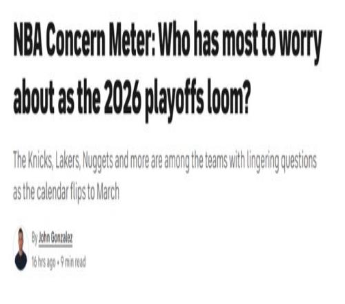 关键卡位战不敌太阳遭遇3连败后,湖人队距离跌出前六仅差1个胜场,这让紫金军团不得不焦虑起来。