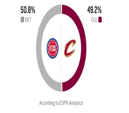 北京时间3月4日,NBA常规赛迎来东部的一场强强对话,骑士坐镇主场迎战榜首的活塞!活塞近期取得3连胜,45胜14负的战绩位列东部第一,本赛季活塞的防守效率109.4位列联盟第二,以杜伦和坎安宁为首的内外核心在攻守两端都实力不俗,不过,活塞也并非没有短板,他们的3分投射存在很大的问题,上一场和魔术一战,活塞前15投全丢!两队在之前有过交手,只缺少斯图尔特的活塞对阵没有哈登、米切尔的骑士,结果全程处于被动挨打的局面,不过骑士接连犯错,最终加时遗憾输球。而赛后的裁判报告中,关键时刻的4次争议判罚,活塞3次都得利,也引发了巨大的热议!本场比赛哈登回归,米切尔继续缺阵,外界看好骑士在主场能拿下活塞!ESPN预测本场比赛的结果,活塞胜率为50.8%,骑士胜率为49.2%。